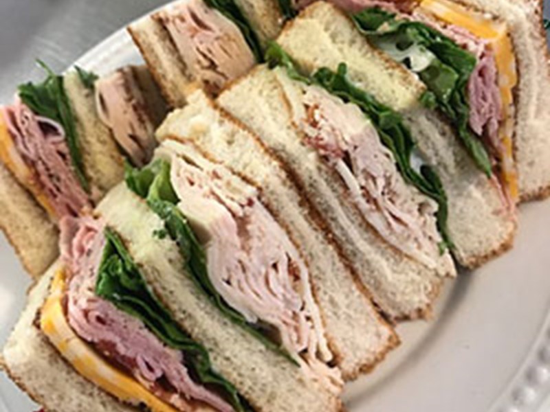 Turkey, Rosemary Ham, Pancetta, Mozzarella, White American Cheese, Tomato, served on Texas Toast, toasted, dressed with Lettuce & Mayo
