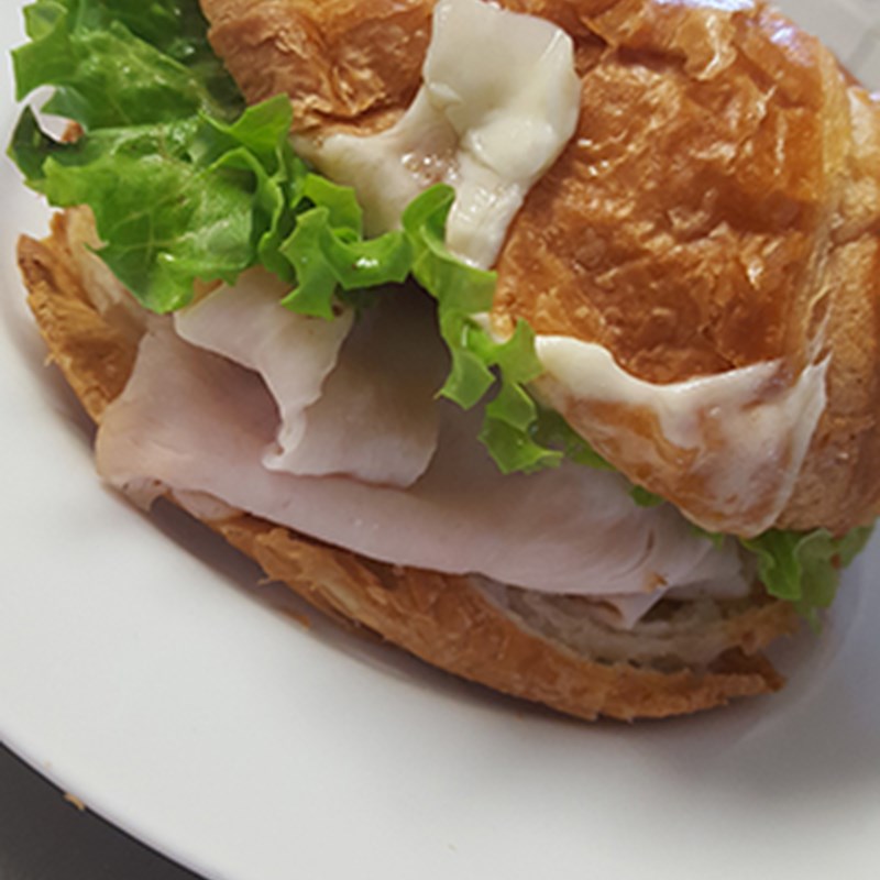 Turkey, Mozzarella, Tomato, served on Croissant, toasted, dressed with Lettuce & Mayo