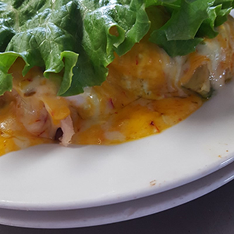 Turkey, Mozzarella, sliced Cucumber, served on Flatbread, toasted, dressed with Lettuce & Mayo